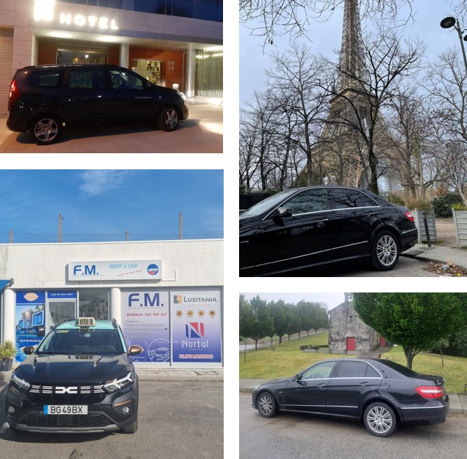 Serviço de Transporte Táxi permanente 24 Horas com viaturas de 5 e 9 lugares (para 4 a 8 passageiros totais).